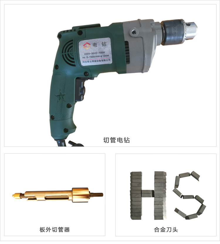 板外快速切管器是由专用大功率电钻、切管器、切管刀头组成,切削刀具从金属管内壁往外快速切断金属管子,以达到要求的长度。该切管器采用前后双定位,前端增加了铜套定位,大大增加切管时的稳定性,同时又避免了切管器定位芯轴擦伤管口提高了切管质量。